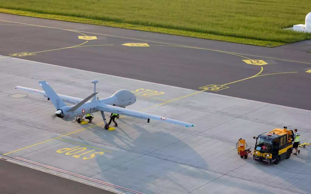 Ce matin, à 07:00, le drone portant l’immatriculation D-14, piloté par un pilote d’essai suisse, a décollé pour son premier vol. Après avoir survolé pendant environ 70 minutes le drone est rentré en toute sécurité à Emmen. Durant le vol, l’engin a atteint une vitesse maximale de 180 km/h et une altitude maximale de 2’000 m au-dessus du niveau de la mer.