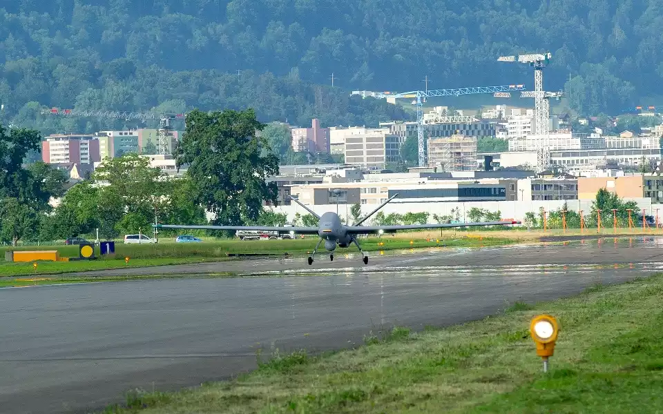 Après les essais de roulage réussis en mai 2022, le premier des deux drones du système de drones de reconnaissance 15 (ADS 15), arrivés en Suisse fin avril 2022, a effectué son premier vol avec succès.