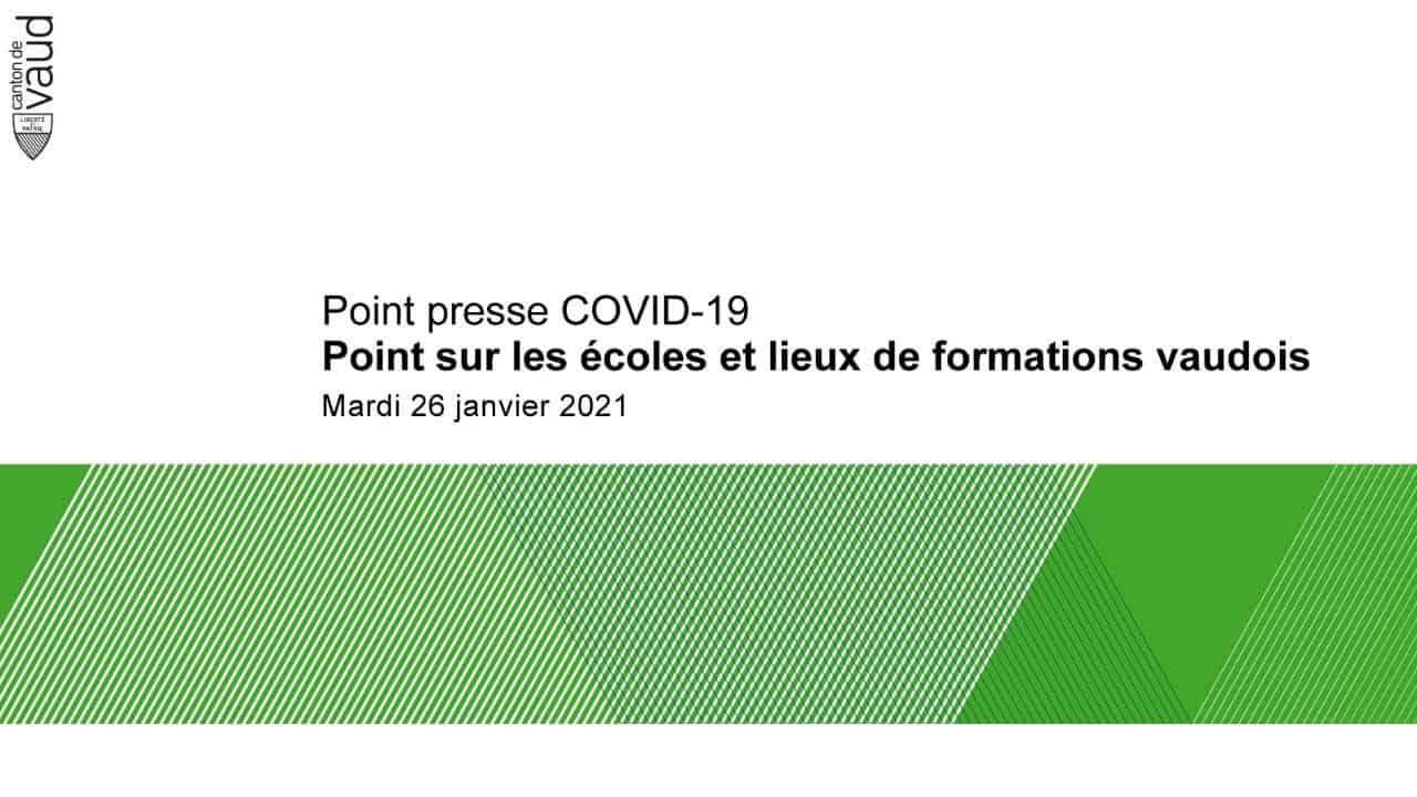 Conférence de presse COVID-19 : point sur les écoles et lieux de formations vaudois Les chiffres et l’évolution de la stratégie de gestion de l’épidémie pour...