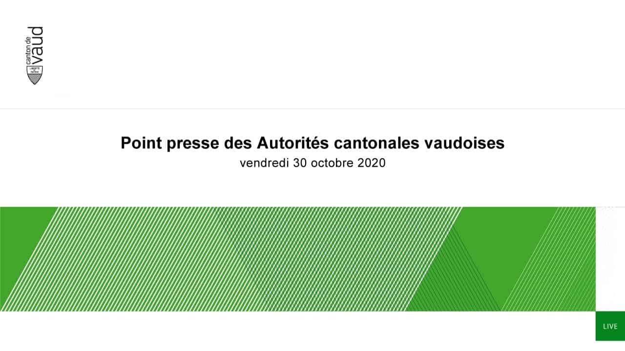 Point presse des autorités cantonales vaudoises – Vendredi 30 octobre 2020 En résumé Mardi, le Conseil d’Etat annoncera de nouvelles aides et mesures financières liées à...