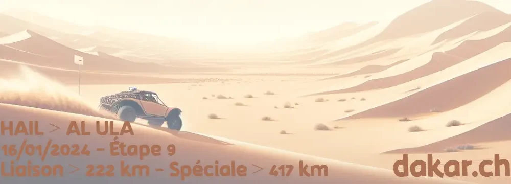 HAIL > AL ULA 16/01/2024 – Étape 9 Liaison > 222 km – Spéciale > 417 km Les coureurs de tête n’auront probablement pas l’opportunité d’apprécier...