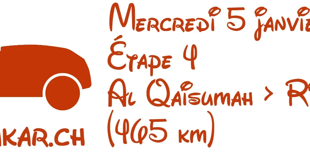 Étape : 5 Date : Jeudi 6 janvier 2022 Départ et Arrivée : Riyadh > Riyadh Total : 637 km Spéciale : 421km Pour aller chercher...