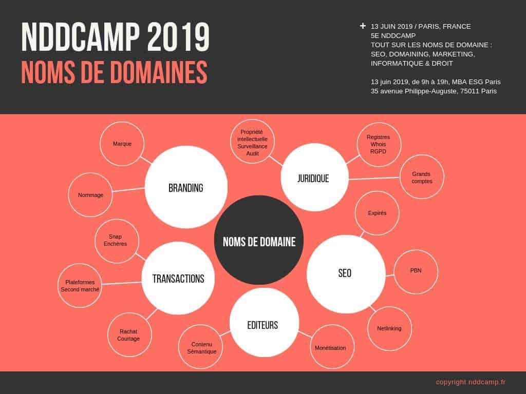 NDDCamp est un événement rassemblant les professionnels des noms de domaine, les éditeurs de sites internet et d’une manière générale toutes les personnes intéressées par les noms de domaine. L’objectif de la rencontre est d’alerter les utilisateurs sur les opportunités et les menaces réelles des noms de domaine, de favoriser la diffusion des bonnes pratiques et de débattre des thèmes-clés du secteur.