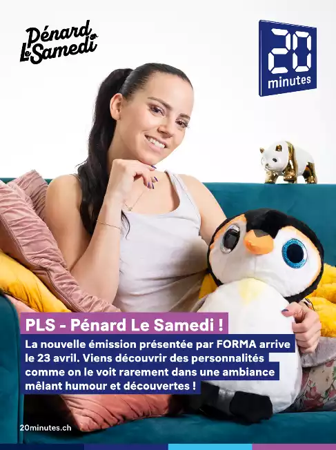 Lausanne, 22 avril 2022 – 20 minutes lance sur son site internet et son application sa nouvelle émission hebdomadaire «Pénard Le Samedi» (abrégé PLS) présentée par FORMA et coproduite entre 20 minutes et Mediaprofil. Ce talk show d’une trentaine de minutes permettra aux utilisateurs de découvrir des personnalités comme on le voit rarement dans une ambiance mêlant humour et bienveillance. Le tout dans un décor convivial invitant à la détente. Pour cette première, c’est l’influenceuse suisse Lanabante qui a accepté de se prêter au jeu. Le présentateur vedette de TF1 Denis Brogniart y fera une apparition amicale.