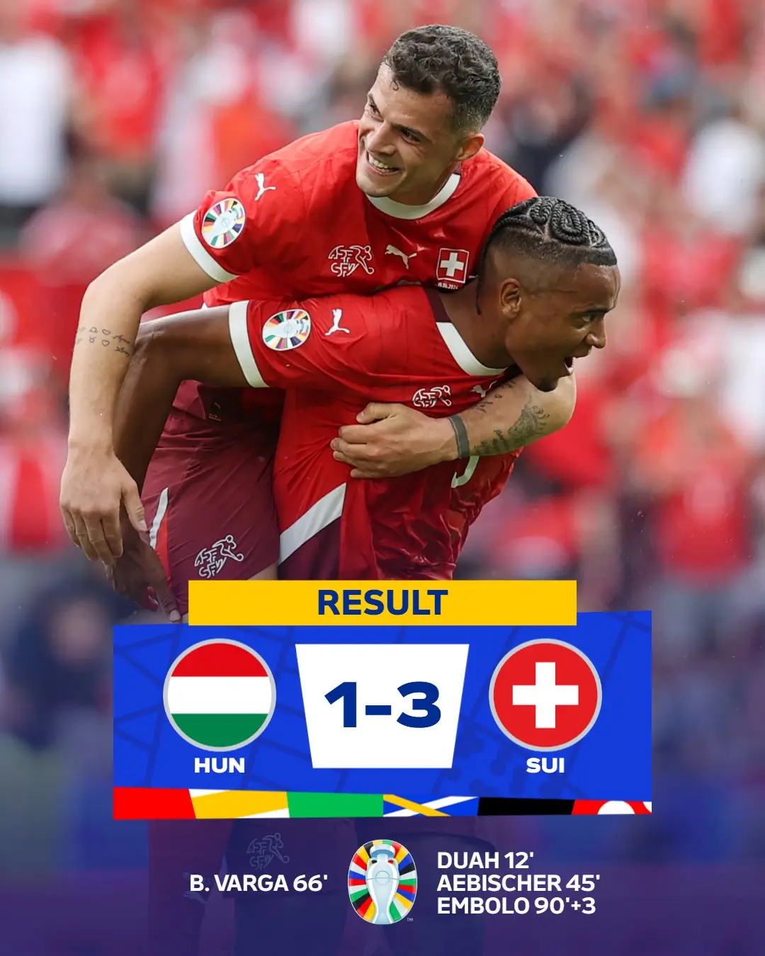 Suite à une victoire éclatante de l’Allemagne contre l’Écosse (5-1) vendredi, grâce à des étoiles comme Musiala, Wirtz et Havertz, la Suisse a répondu samedi à Cologne en utilisant des joueurs moins célèbres pour battre la Hongrie (3-1) lors de leur deuxième match du groupe A de l’Euro.