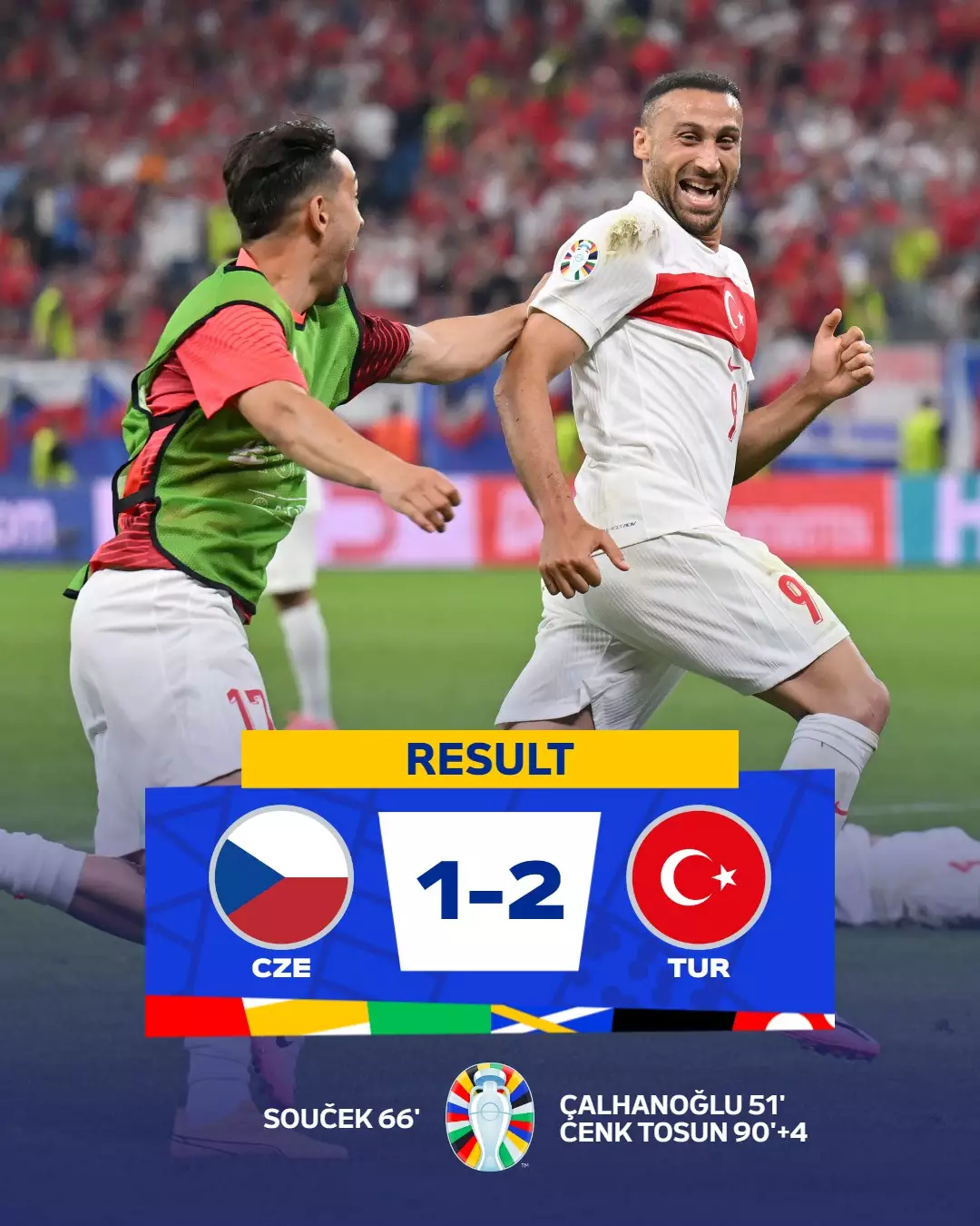 Au final, les Turcs ont remporté la bataille du soir (2-1) et ont décroché leur qualification pour les huitièmes de finale grâce à un but de Cenk Tosun dans le temps additionnel. Ce duel face aux Tchèques s’est terminé sur un record de cartons avec 16 avertissements et deux expulsions pendant le match.