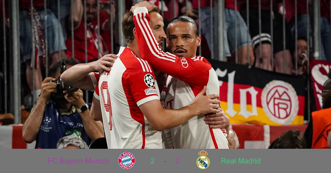 Cette première rencontre des demi-finales de la Ligue des Champions était un spectacle grandiose, mettant aux prises le géant allemand, le Bayern Munich, avec le célèbre Real Madrid. Le match a répondu à toutes les attentes : intense, riche en occasions, et marqué par quatre buts pour un score final de 2-2, le tout dans une Allianz Arena comble.