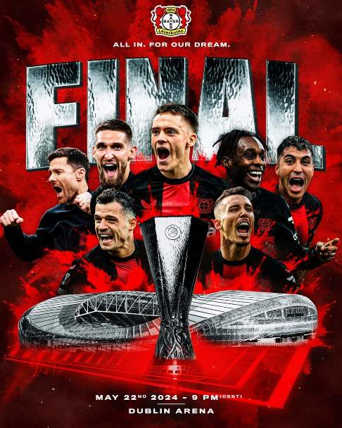 Trois jours après leur match à Dublin, le Bayer Leverkusen jouera son 53e et dernier match de la saison au Stade olympique de Berlin, où il disputera la finale de la Coupe d’Allemagne. Cette rencontre sera le point culminant d’une saison déjà remarquable, marquée par l’obtention du premier titre de champion d’Allemagne du club dès la 29e journée, et par cette incroyable série invaincue.