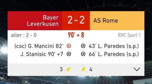 La délivrance pour Leverkusen est survenue à la 83e minute, sur un corner exécuté par Alejandro Grimaldo. Dans ce qui fut sa seule erreur du match, le gardien de la Roma, Mile Svilar, a mal jugé sa sortie et a percuté son défenseur Chris Smalling. La confusion qui en a résulté a vu le ballon retomber sur Mancini, un autre défenseur de la Roma, qui, malheureusement pour son équipe, a marqué contre son camp. Ce but a permis à Leverkusen de se qualifier pour la suite de la compétition, à moins de dix minutes de la fin du match.
