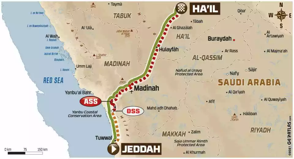 C’en est fini des dunes, mais pas du sable, qui recouvre encore la plupart des pistes au programme de l’ultime spéciale. Les habitudes prises depuis le début de rallye permettront à tous de savourer à plein le pilotage. En revanche, les liaisons seront longues pour rejoindre les rivages de la Mer Rouge et le podium installé sur la corniche de Jeddah.