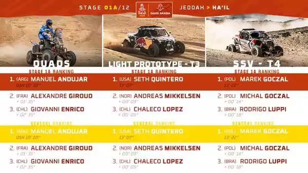 Au beau milieu de deux longues liaisons, l’exercice de 19 kilomètres à parcourir sur des pistes de terre et quelques dunettes servira à tester son véhicule, mais surtout à répartir les pilotes selon leur niveau pour donner le départ du lendemain. Les résultats du jour donneront également l’occasion de procéder au briefing à une cérémonie particulière où les 15 premiers de chaque catégorie choisissent, dans l’ordre inverse du classement, leur position de départ pour la spéciale 1B…partie de bluff garantie !