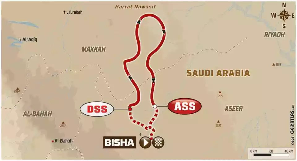 Pour achever la première semaine du rallye, la deuxième boucle tracée avec départ et arrivée dans la capitale explore cette fois l’ouest de Riyadh. Les nombreux croisements de pistes du début de la spéciale exigeront une vigilance maximale de la part des copilotes. Les dunes du jour se présenteront en milieu de programme, avec une quarantaine de kilomètres d’ergs à avaler. Ceux qui auront pris l’avantage sur cette portion pourront ensuite capitaliser sur les pistes roulantes du final.