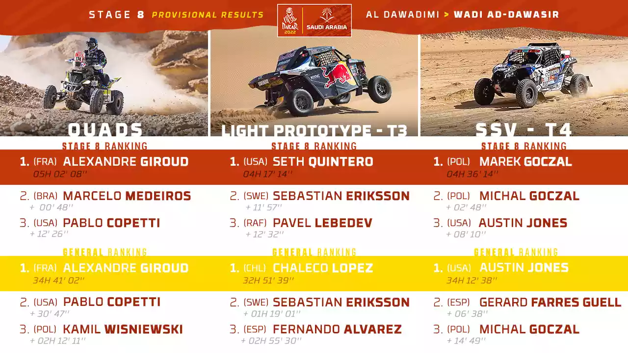 Site officiel : https://www.dakar.com/fr/etape-8/auto